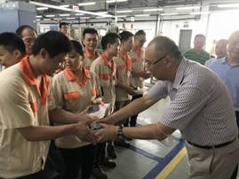 張總一行親切慰問了注塑總裝車間、電機裝配車間、物流倉庫等奮戰(zhàn)在生產(chǎn)一線的員工,分別與正在工作的員工一一握手,遞上毛巾、綠豆湯等防暑用品,囑咐大家在努力工作的同時,要當心身體、注意休息,保證個人的身體安全和企業(yè)的生產(chǎn)安全。