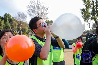 隨著朱書(shū)記一聲令下,騎行隊(duì)伍駛離出發(fā)點(diǎn)。此次騎行是沿紫氣東來(lái)公園騎一圈,途中沿遠(yuǎn)香湖步行一圈,并完成5項(xiàng)挑戰(zhàn):“肺比尋?!北鹊氖欠位盍?,1分鐘內(nèi)成功吹爆氣球則過(guò)關(guān);“手到擒來(lái)”比的是投擲技術(shù),目標(biāo)設(shè)計(jì)成一個(gè)個(gè)客戶標(biāo)志,射中表示成功拿下客戶訂單,即過(guò)關(guān);“身手腳健”比的是協(xié)調(diào)性,連續(xù)踢5下毽子則過(guò)關(guān);“智慧拼圖”比的是腦力,2分鐘內(nèi)完成不規(guī)則拼圖,即過(guò)關(guān);“聲價(jià)百倍”比的是愛(ài)國(guó)情懷,對(duì)著分貝儀喊“我愛(ài)你中國(guó)!”,達(dá)到130分貝即過(guò)關(guān),分貝越高說(shuō)明愛(ài)國(guó)之情越濃烈。