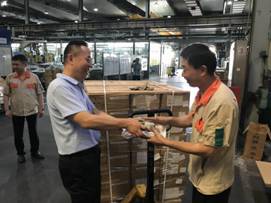 張總一行親切慰問了注塑總裝車間、電機裝配車間、物流倉庫等奮戰(zhàn)在生產(chǎn)一線的員工,分別與正在工作的員工一一握手,遞上毛巾、綠豆湯等防暑用品,囑咐大家在努力工作的同時,要當心身體、注意休息,保證個人的身體安全和企業(yè)的生產(chǎn)安全。