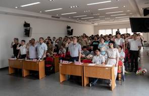 2020年7月27日在技術(shù)大樓四樓多功能室舉辦紀念建黨99周年“四史教育”主題黨日活動暨十佳員工頒獎大會。全體黨員、中層以上干部、獲獎人員150余人參加了會議。